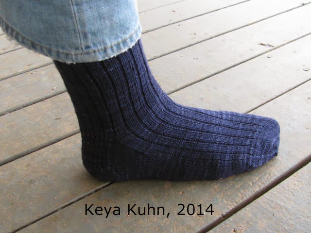 The yarn that I used is my own hand-dyed Rocket Sock Medium in Green Apple. I'm toying with the idea of knitting this pattern again (I foresee that I will knit this pattern again and again as a staple to my sock wardrobe--I'm that in love with it!). The next pair you see may be a little more wild, though this green (the heel pic is a bit off in color and I don't know why except that Blogger likes to adjust my color as it sees fit) is pretty wear-your-sunglasses-to-look-at-your-feet bright. Rocket Sock Medium is a 4-ply superwash wool in the traditional sense (it doesn't have the glossy sheen that the regular Rocket Sock has) and with a fantastic elasticity and stitch definition.